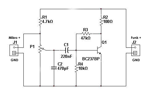 Normalerweise ist der Innenwiderstand des Elektretmikrofons zu hoch und damit der Stromfluss zu niedrig, um den Sender