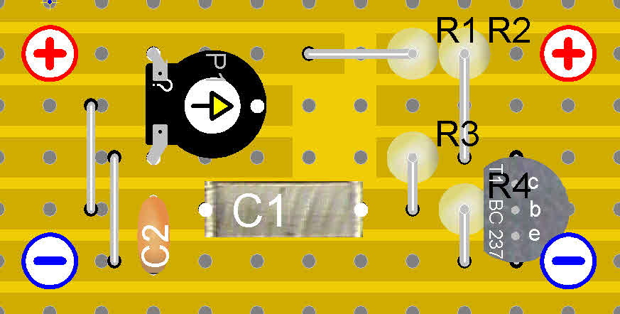 unterbrochen werden. Die Widerstände sind alle stehend eingebaut. Die zwei linken