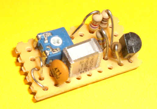 Die tatsächliche Grösse ist 15 x 30 mm. P1 ist ein 2,5 kOhm Trimmer. Die hellen Flächen auf den